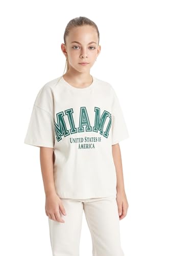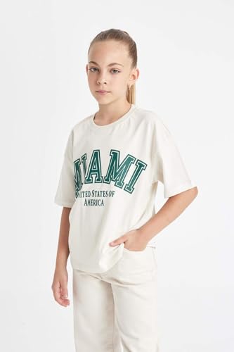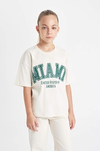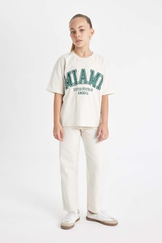 DeFacto - تيشيرت عصري بقصة مريحة وأكمام قصيرة ورقبة دائرية ضيقة وتصميم منسوج للبنات C8283A8 من ديفاكتو