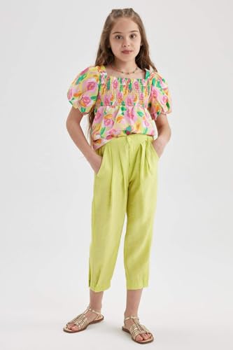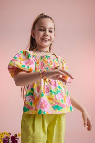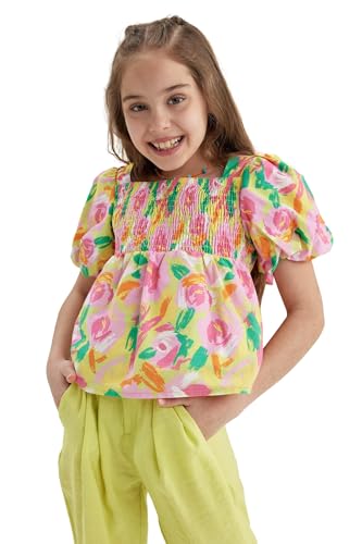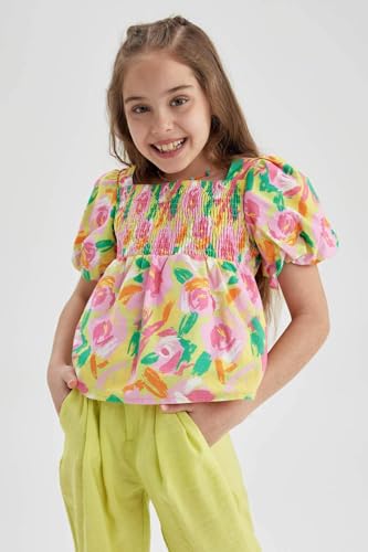 DeFacto - بلوزة ريلاكس بنصف كم ورقبة مربعة وأكمام قصيرة للبنات من ديفاكتو، موديل A0083A8