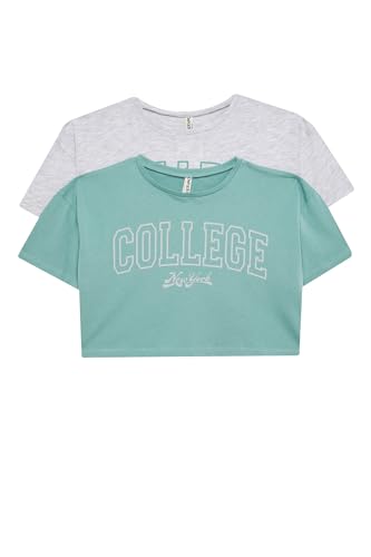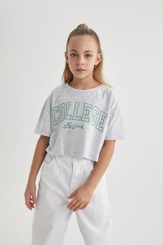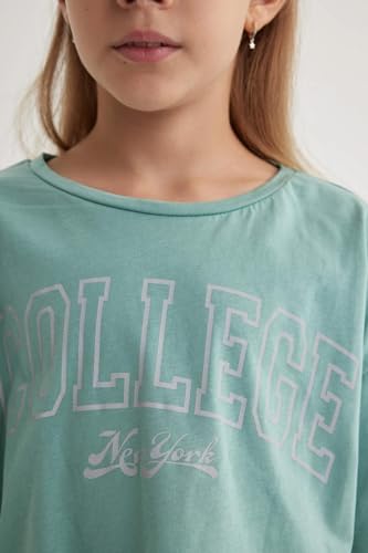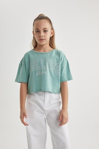DeFacto - بلوزة قصيرة بأكمام ورقبة دائرية للبنات من ديفاكتو قطعتين