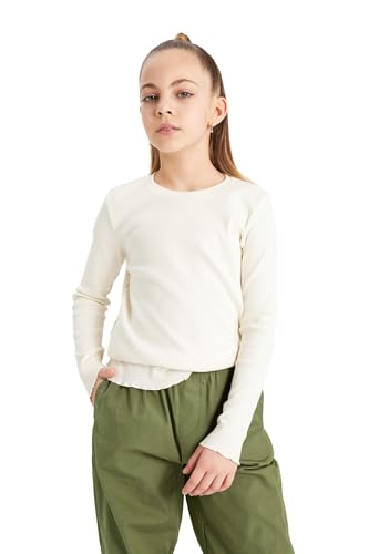 DeFacto - تيشرت بقصة ضيقة سليم فت وأكمام طويلة ورقبة دائرية ضيقة للبنات من ديفاكتو، موديل B7452A8