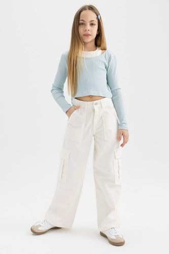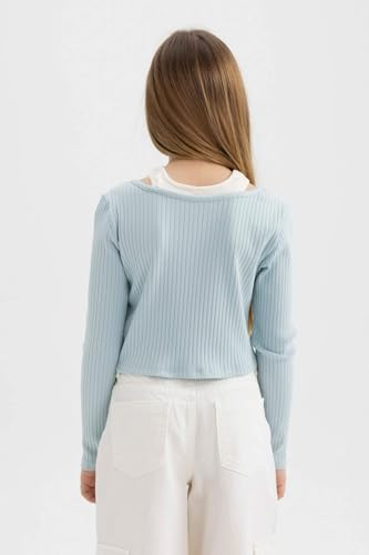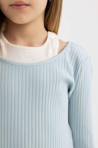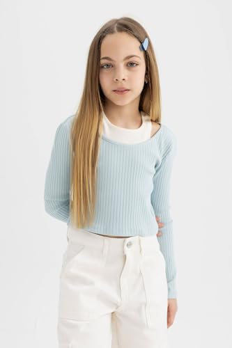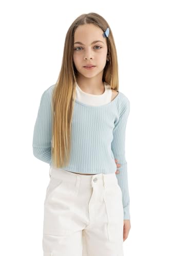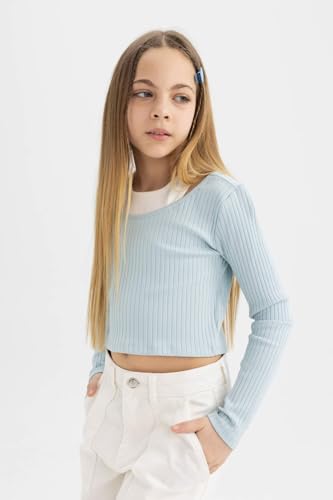 DeFacto - تيشرت عصري بأكمام طويلة وقصة ضيقة ورقبة دائرية للبنات من ديفاكتو - B7388A8