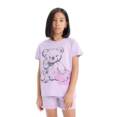 DeFacto - بيجامات بناتي من تشكيلة خاصة قصة عادية وبأكمام قصيرة ملابس منزلية محبوكة من ديفاكتو (عبوة من قطعة واحدة)