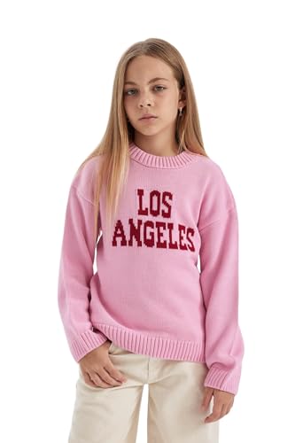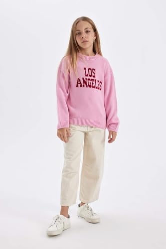 DeFacto - بلوفر تريكو للبنات C6904A8 من ديفاكتو، مقاس كبير ورقبة دائرية ضيقة وأكمام طويلة