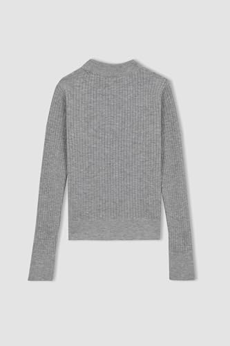 DeFacto - بلوفر تريكو للبنات من ديفاكتو بقصة عادية ورقبة دائرية ضيقة وأكمام طويلة، A2292A8