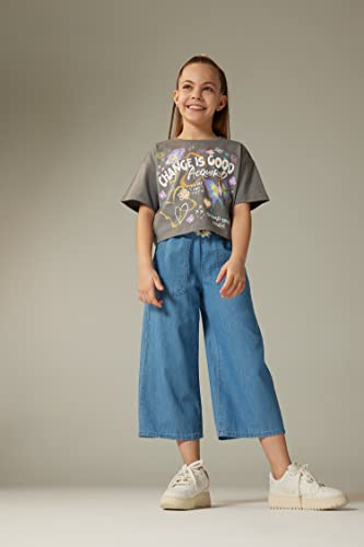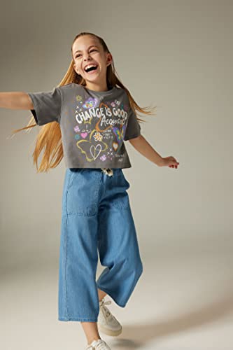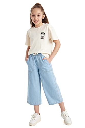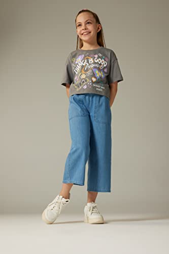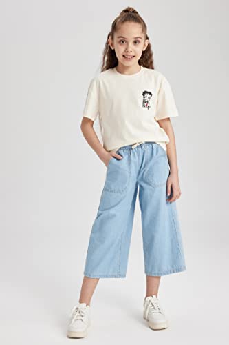 DeFacto - بنطلون دنيم جينز برمودا بارجل واسعة بطول واسع وخصر للبنات من ديفاكتو