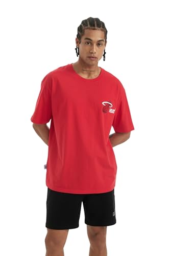 DeFacto - تيشيرت رجالي منسوج برقبة دائرية ضيقة وأكمام قصيرة من ديفاكتو، موديل B9900AX، لون أحمر (RD303)، مقاس كبير L