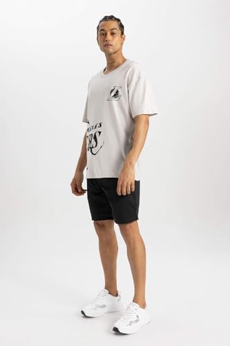 DeFacto - تيشرت للرجال بقصة ضيقة ورقبة دائرية ضيقة وأكمام قصيرة من ديفاكتو، موديل B9895AX