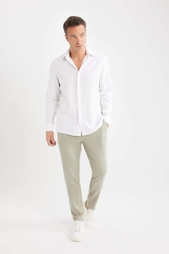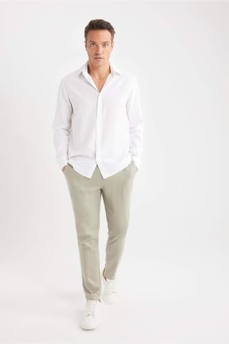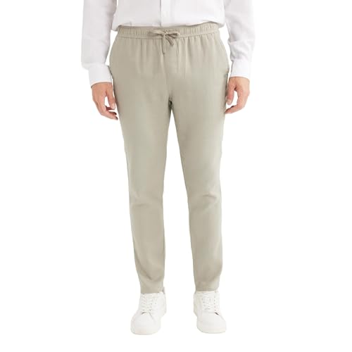 DeFacto - ديفاكتو بنطلون رياضي كاجوال منسوج للرجال، لون كاكي فاتح، مقاس 30