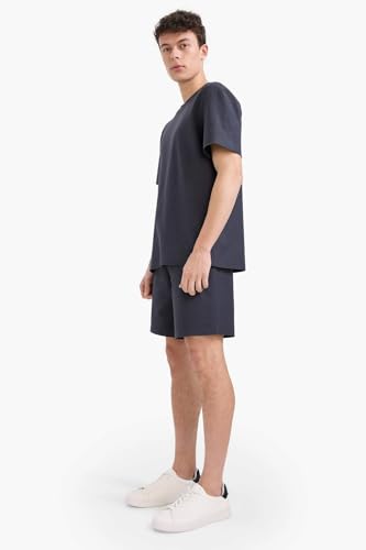 DeFacto - ديفاكتو شورت كاجوال منسوج بقصة مريحة للرجال، رصاصي، مقاس M