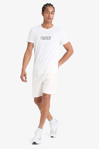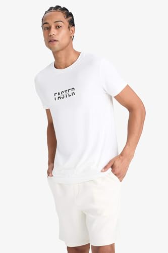 DeFacto - ديفاكتو تيشرت محبوك بقصة ضيقة ورقبة دائرية ضيقة واكمام قصيرة، لون ابيض، مقاس M