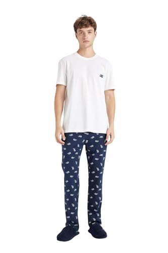 DeFacto - طقم ملابس داخلية محبوكة بقصة عادية ورقبة دائرية ضيقة واكمام قصيرة للرجال من ملابس المنزل من ديفاكتو D0939AX