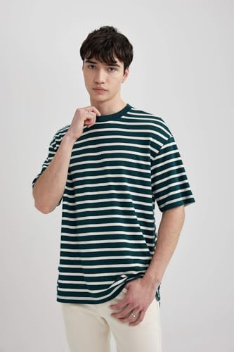 DeFacto - تيشرت رجالي منسوج بقصة مريحة ورقبة دائرية ضيقة وأكمام قصيرة من ديفاكتو، موديل B5910AX