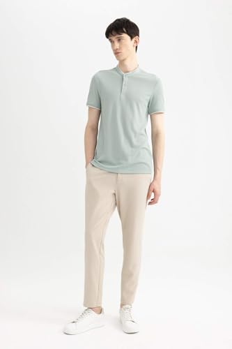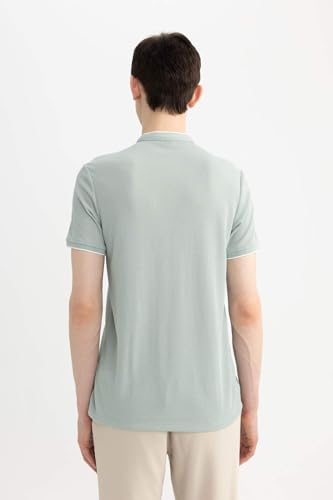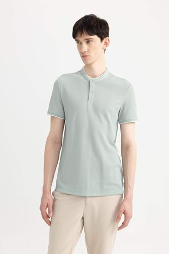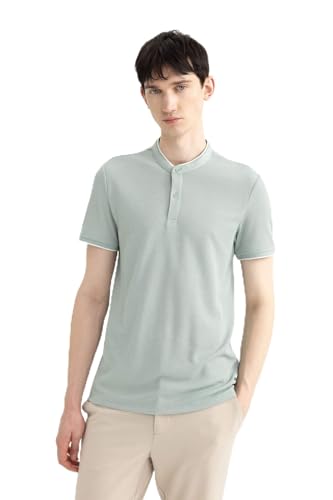 DeFacto - تيشرت بولو منسوج بقصة أنيقة وياقة واقفة وأكمام قصيرة للرجال Z4262AZ من ديفاكتو، أخضر فاتح، مقاس 3XL