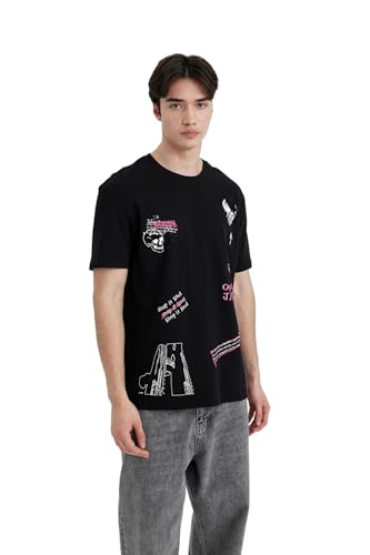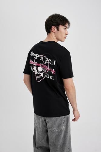 DeFacto - تيشرت منسوج بقصة عادية ورقبة دائرية ضيقة وأكمام قصيرة للرجال من ديفاكتو،موديل B6499AX