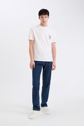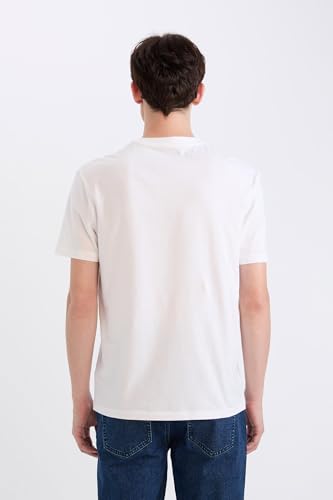 DeFacto - ديفاكتو تيشرت شبابي محبوك بقصة عادية ورقبة دائرية ضيقة واكمام قصيرة للرجال D9357AX، لون ابيض، مقاس M