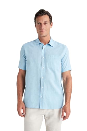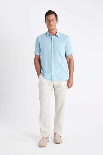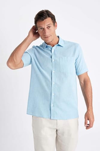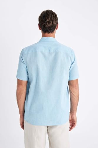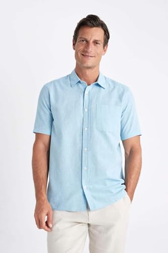 DeFacto - قميص D4497AX بأكمام قصيرة ورقبة بولو وقصة عادية للرجال من ديفاكتو، أزرق (BE281)، مقاس لارج L