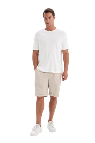 DeFacto - ديفاكتو برمودا كاجوال قصير منسوج من مان سمارت، لون بيج، مقاس 34