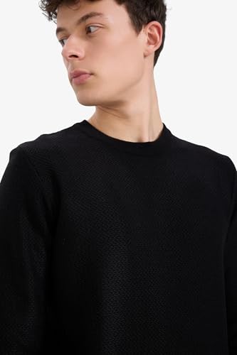 DeFacto - ديفاكتو بلوفر تريكو بقصة عادية ورقبة دائرية ضيقة واكمام طويلة للرجال C9618AX لون اسود مقاس XL