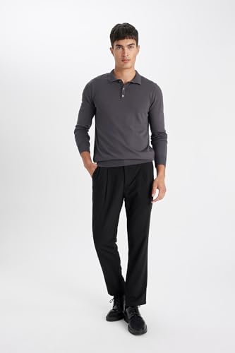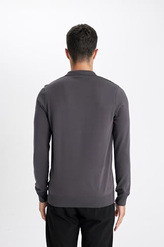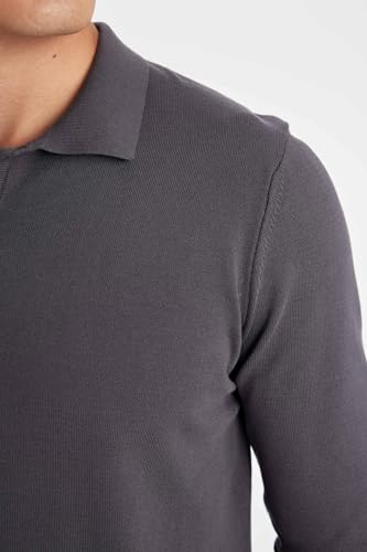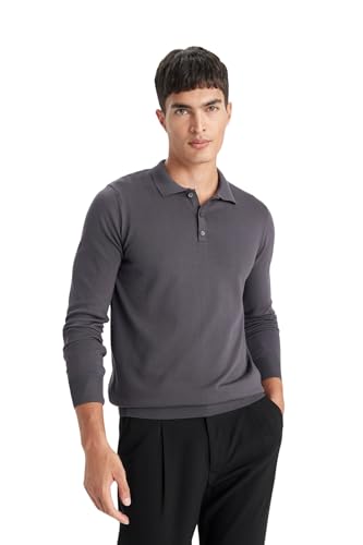 DeFacto - بلوفر تريكو بقصة عادية ورقبة بولو وأكمام طويلة للرجال D0454AX من ديفاكتو، رصاصي، مقاس ميديوم M