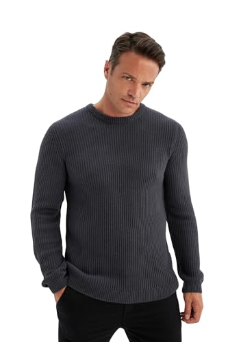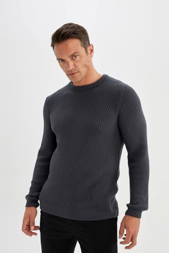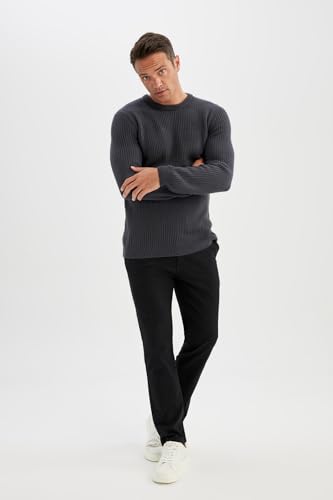 DeFacto - بلوفر تريكو بقصة عادية ورقبة دائرية وأكمام طويلة للرجال من ديفاكتو، موديل C8814AX