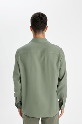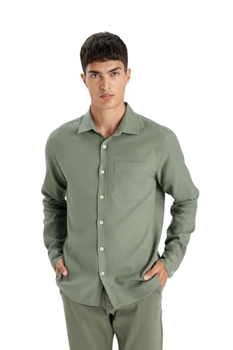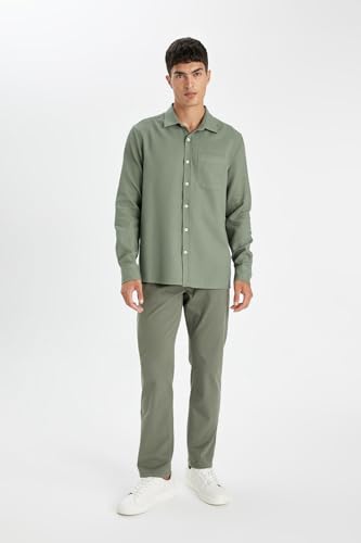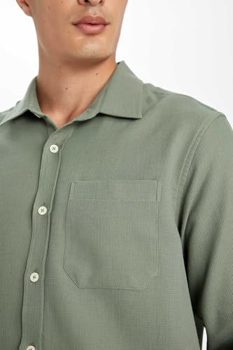 DeFacto - قميص منسوج بقصة عادية ورقبة بولو وأكمام طويلة للرجال من ديفاكتو، D1058AX كلاسيكي