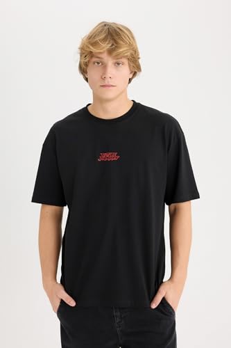 DeFacto - ديفاكتو تي شيرت محبوك باكمام قصيرة ورقبة دائرية ضيقة للرجال الشباب، لون اسود، مقاس XL