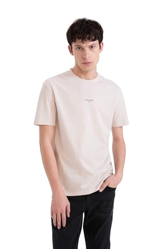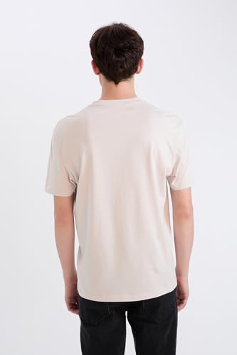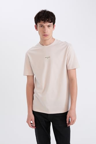 DeFacto - ديفاكتو تيشرت محبوك بقصة عادية ورقبة دائرية ضيقة واكمام قصيرة للرجال والشباب، لون ستون مقاس XXL