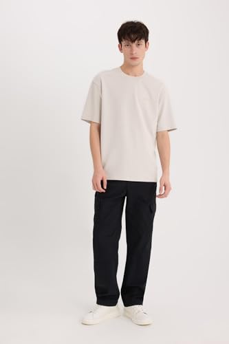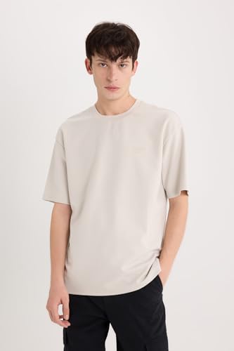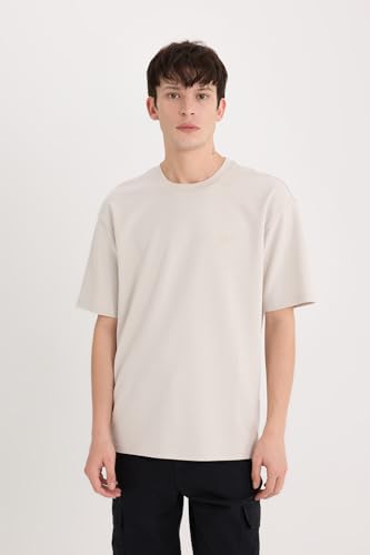 DeFacto - تيشرت منسوج للرجال بقصّة ضيقة ورقبة دائرية ضيقة وأكمام قصيرة، تيشرت D5507AX من ديفاكتو