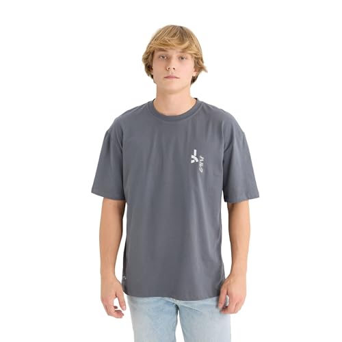 تيشرت محبوك بقصة ضيقة ورقبة دائرية ضيقة واكمام قصيرة للشباب D6784AX