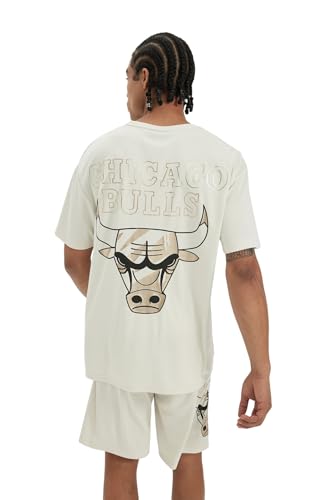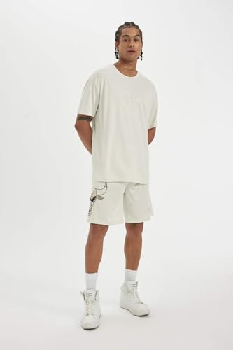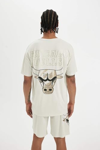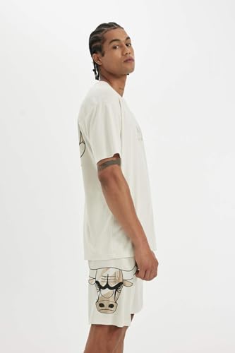 DeFacto - تيشرت منسوج برقبة دائرية ضيقة وأكمام قصيرة رجالي بنمط دوري كرة السلة الأمريكي من ديفاكتو، موديل B9916AX