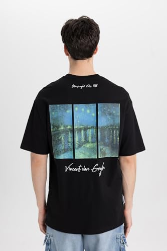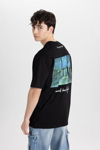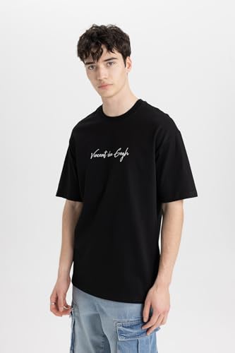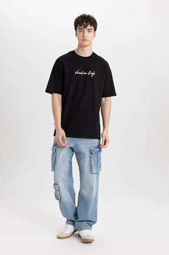 DeFacto - تيشرت منسوج بقصة مريحة ورقبة دائرية ضيقة وأكمام قصيرة للرجال من ديفاكتو B5517AX