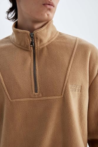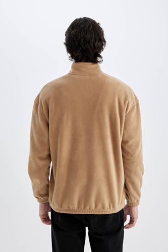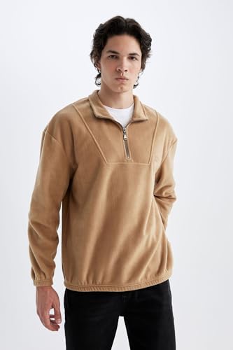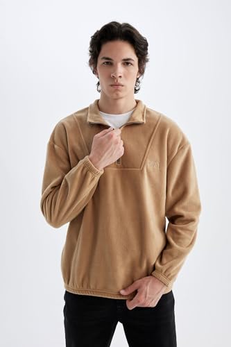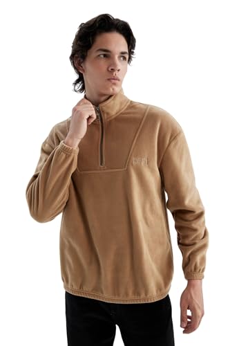 DeFacto - سويت شيرت عصري منسوج بقصة مريحة ورقبة دائرية عالية وأكمام طويلة للرجال من ديفاكتو، موديل C7793AX