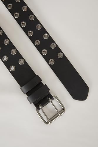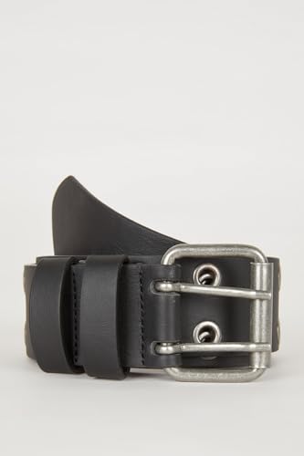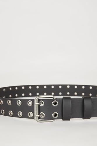 DeFacto - حزام أسود من الجلد الصناعي باكسسوار مربع فضي من ديفاكتو