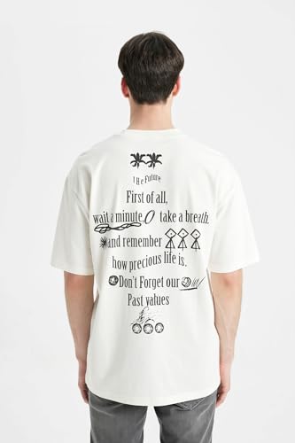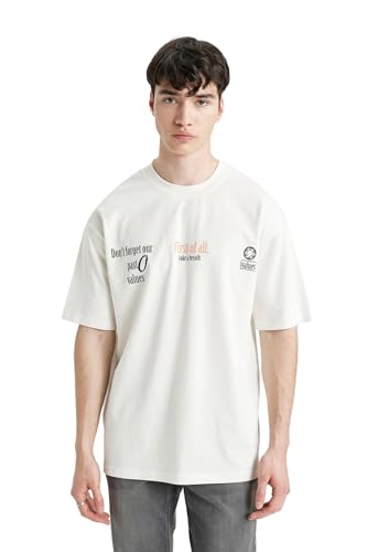 DeFacto - تيشرت محبوك بقصة مريحة ورقبة دائرية ضيقة وأكمام قصيرة للرجال من ديفاكتو، موديل C2243AX