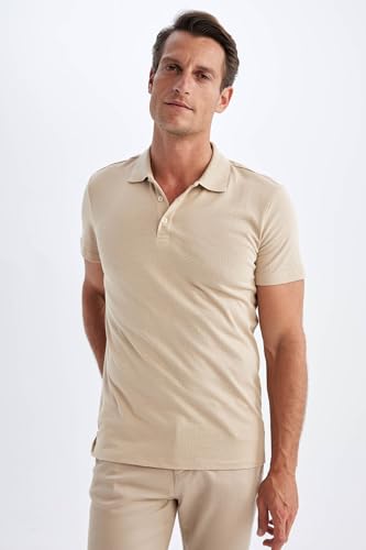 DeFacto - تيشرت منسوج بقصة ضيقة سليم فت ورقبة بولو وأكمام قصيرة للرجال من ديفاكتو