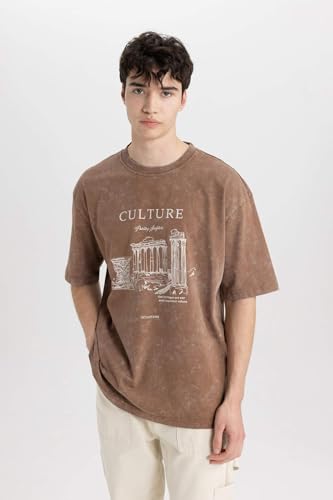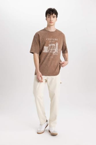 DeFacto - تيشيرت رجالي منسوج بمقاس كبير ورقبة دائرية ضيقة وأكمام قصيرة من ديفاكتو، موديل C0150AX