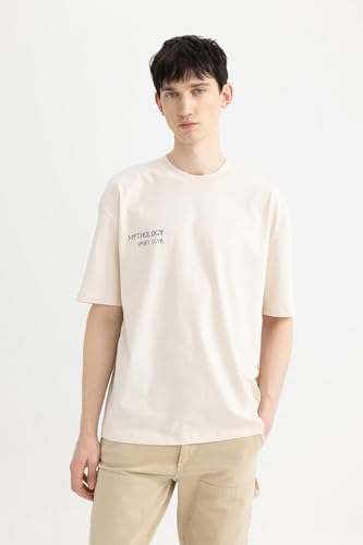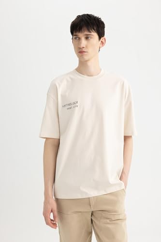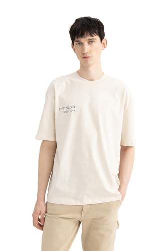 DeFacto - تيشرت منسوج للرجال C3625AX بمقاس كبير ورقبة دائرية ضيقة وأكمام قصيرة من ديفاكتو