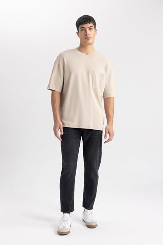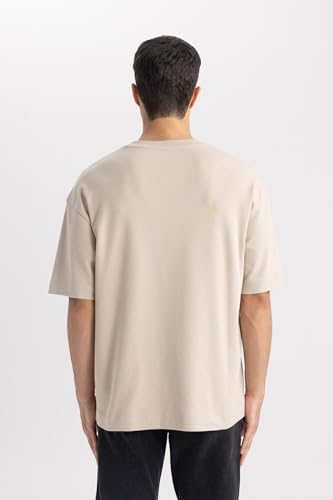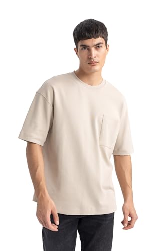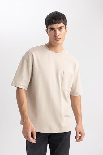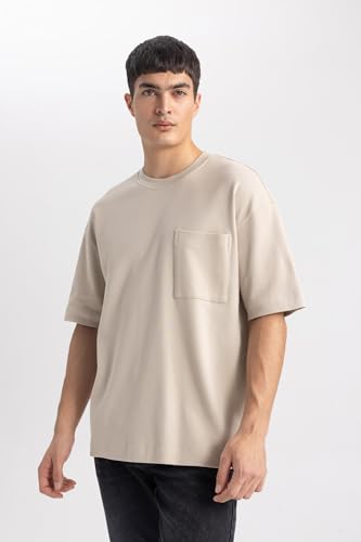 DeFacto - تيشيرت للرجال بقصة واسعة أوفر سايز ورقبة دائرية ضيقة وكم قصير موديل T3661AZ من ديفاكتو