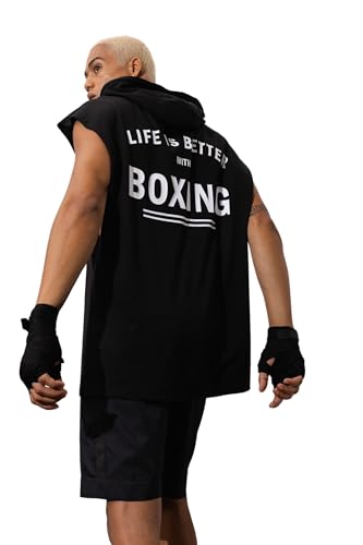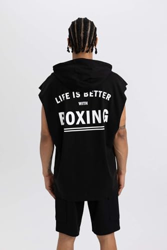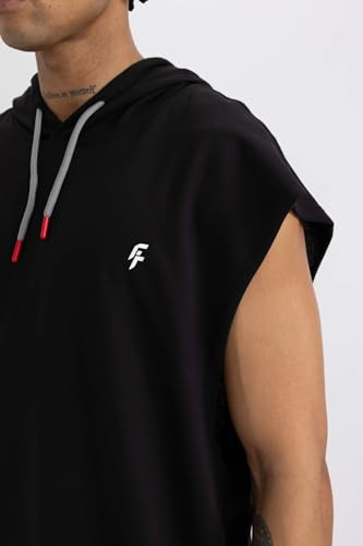 DeFacto - توب رياضي منسوج بمقاس كبير بغطاء للرأس بدون أكمام للرجال من ديفاكتو، A2237AX