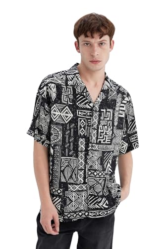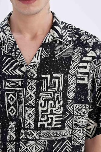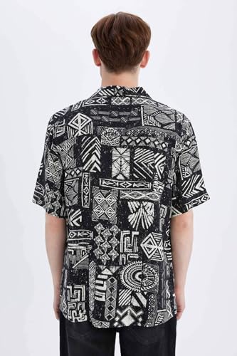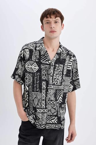 DeFacto - قميص بأكمام قصيرة ورقبة اباتشي وقصة عادية للرجال C7686AX من ديفاكتو