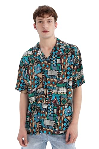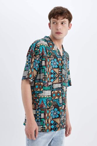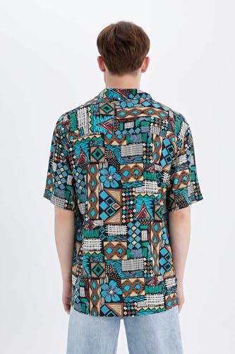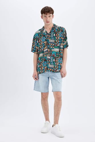 DeFacto - قميص بنسيج محبوك وأكمام قصيرة ورقبة اباتشي بقصة عادية للرجال C7687AX من ديفاكتو