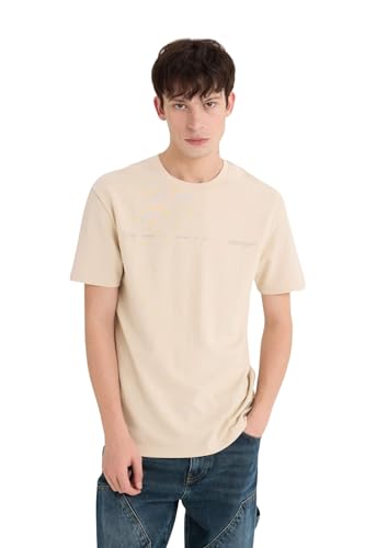 DeFacto - تيشرت بقصة عادية للرجال من ديفاكتو، ورقبة دائرية، بأكمام قصيرة وتصميم شبابي منسوج، موديل D5515AX