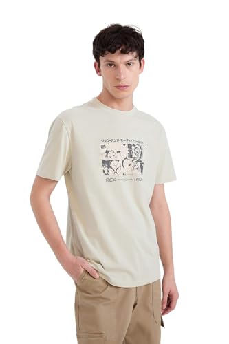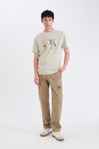 DeFacto - تيشرت E0330AX منسوج برقبة دائرية ضيقة وأكمام قصيرة وقصة عادية للرجال والشباب من ديفاكتو