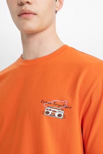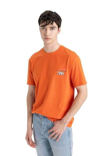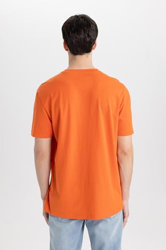 DeFacto - تيشرت منسوج بقصة عادية ورقبة دائرية ضيقة وأكمام قصيرة للرجال من ديفاكتو، موديل C2130AX