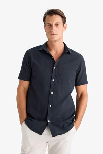 DeFacto - قميص عصري قصير الأكمام للرجال من ديفاكتو، بنسيج محبوك ورقبة بولو وقصة عادية، موديل D7551AX