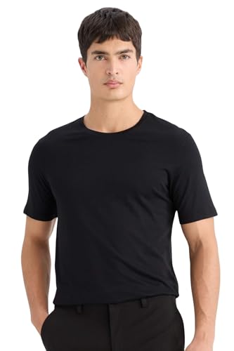 DeFacto - تيشرت سمارت كاجوال منسوج بقصة ضيقة ورقبة دائرية ضيقة وأكمام قصيرة للرجال من ديفاكتو، (عبوة من 1 قطعة)- M6606AZ