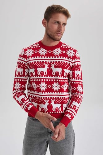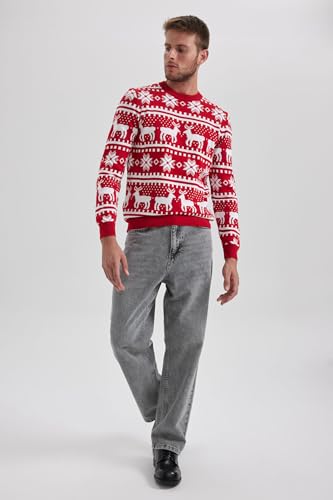 DeFacto - بلوفر تريكو بقصة قياسية ورقبة دائرية ضيقة وأكمام طويلة للرجال من ديفاكتو B2356AX