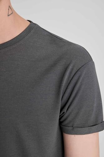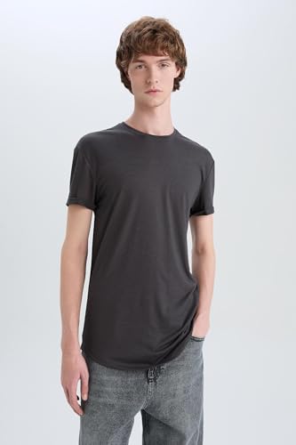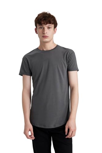 DeFacto - ديفاكتو قميص نصف كم للرجال بتصميم طويل وقبة دائرية ضيقة واكمام قصيرة محبوك للشباب