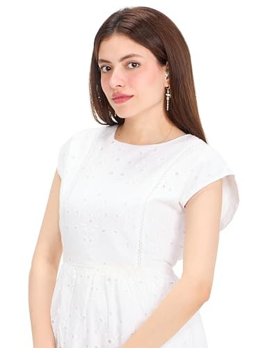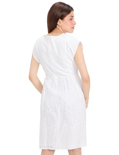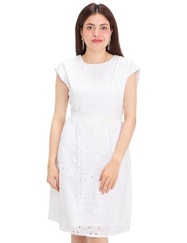 DeFacto - ديفاكتو فستان ايه لاين برقبة على شكل حرف C واكمام قصيرة وجيبة منسوجة واكمام قصيرة للنساء، اوف وايت مقاس 40