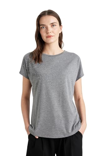DeFacto - تيشرت محبوك باكمام قصيرة واسعة ورقبة دائرية ضيقة حريمي من ديفاكتو - C2112AX